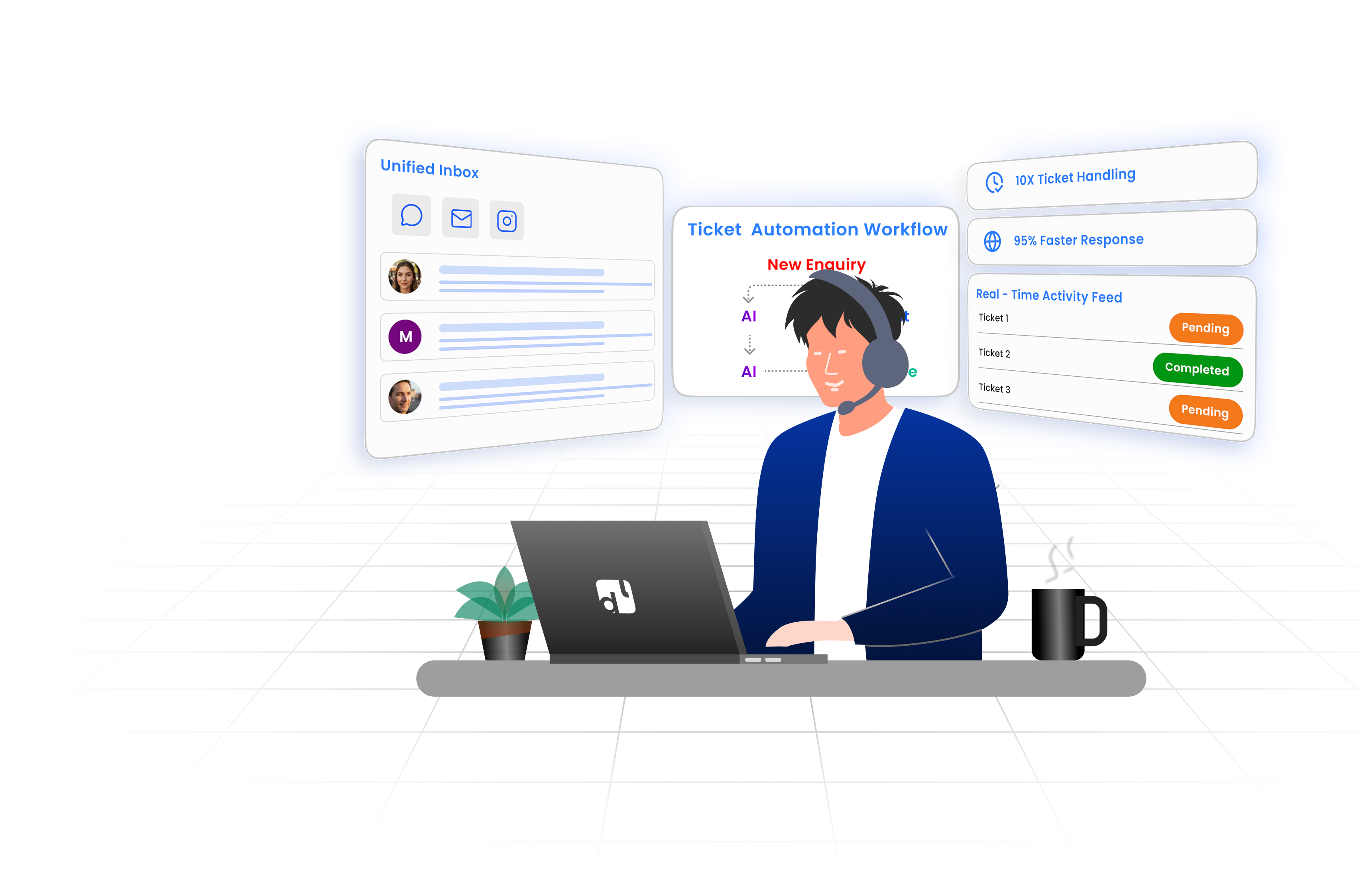 Handle 10x more tickets with intelligent automation, omnichannel support, and lightning-fast response times. Join 50,000+ businesses delivering exceptional customer service.