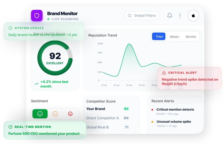 Monitor sentiment and public perception in real time to protect brand credibility and strengthen customer trust.