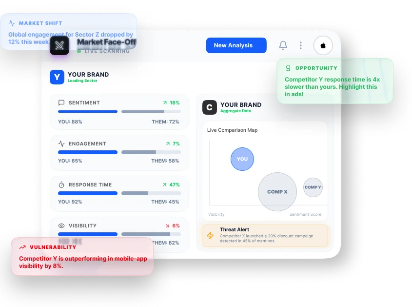 Compare your brand against competitors to measure strengths and gaps.